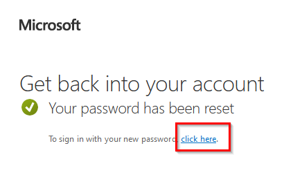 8. Click on “click here” in the Get back into your account pop-up: