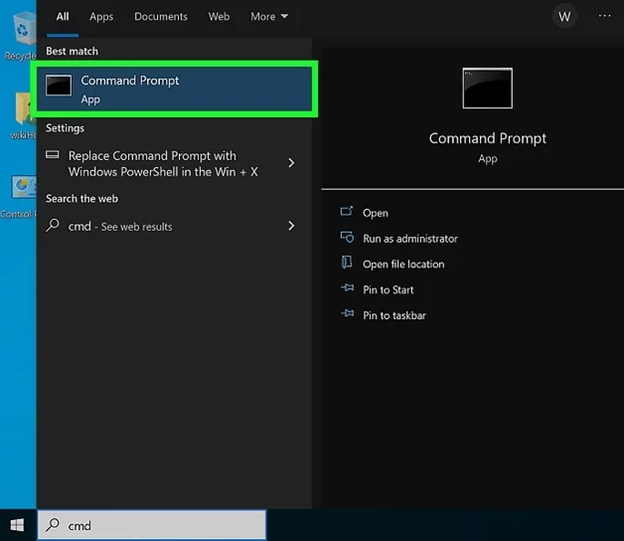 2 Type cmd into the search bar and click Command Prompt.This opens the Command Prompt window.