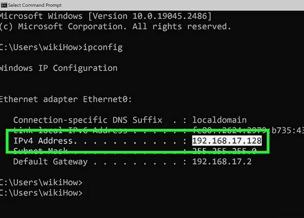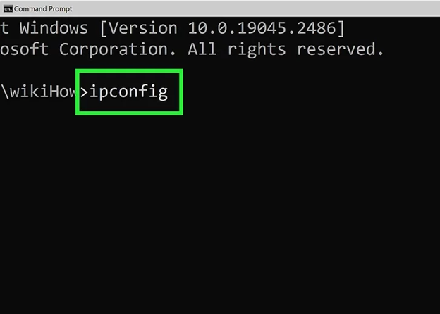 3 Type ipconfig and press ↵ Enter.This command displays your IP configuration, including your local (private) IP address.