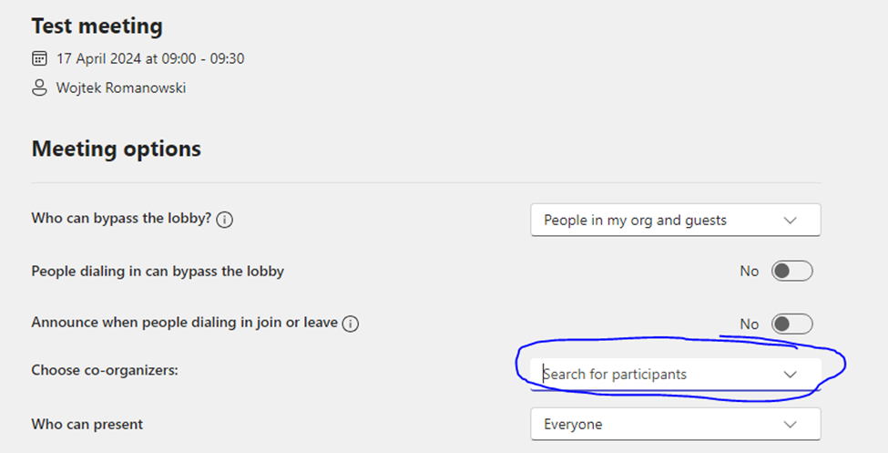 Setting up Co-Organizers on MS Teams meeting