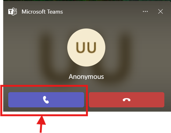 Receive Calls in MS Teams: When someone calls you, a pop-up will appear then click Accept to answer the call as show below: -