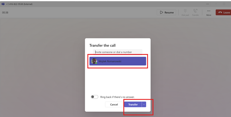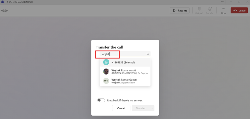 While on a call, click on Transfer.